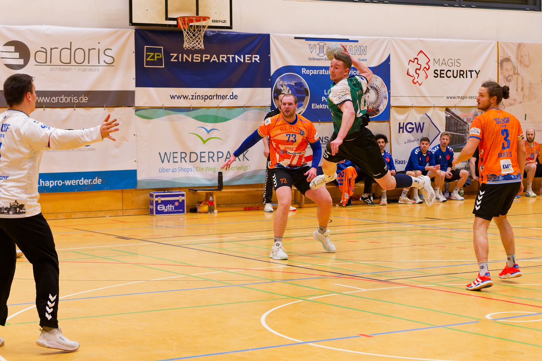 Wie erwartet verlief der Beginn in die Partie völlig ausgeglichen. Beide Teams hatten offensiv Probleme und keines konnte sich absetzen. Die Gäste erzielten die meisten Tore aus dem Rückraum, während die Brandenburger sich auf ihre individuellen Zweikämpfe verließen, welche zu oft von der 5:1-Abwehr der Gäste unterbunden wurden. Hinzu kamen die starken Unterschiede bei den Abschlüssen. OSF hatte eine starke Abschussquote, während die Tabellenführer mehrere freie Würfe vergaben. Durch eine starke Schlussphase der ersten Hälfte schafften es die Gäste, sich auf 13:15 abzusetzen. Nach der Pause holte Werden diesen Rückstand schnell auf, schaffte es aber nicht, sich eine komfortable Führung herauszuspielen. Von nun an war es absoluter Krimi, mit stetigen Führungswechseln. Eine Minute vor Schluss erzielten die Hauptstädter das Tor zum 31:32, welches Werder nicht mehr beantworten konnte. Somit verlor Werder das erste Ligaspiel seit November 2024 und hatte die ersten Minuspunkte der Saison zu verkraften.