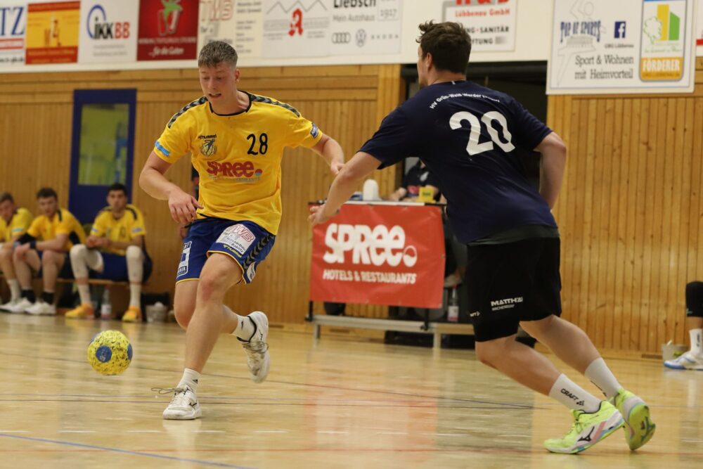 Die Anfangsphase verlief erwartet ausgeglichen und bis zum 6:7 nach acht Minuten konnte sich kein Team absetzen. Dann bekam die trotz der Ausfälle stabile Abwehr der Gäste mehr Zugriff und konnte sich mit sehr konsequentem Tempospiel belohnen, was zu einem 8:16 nach 21 Minuten führte, und die Gastgeber zur bereits zweiten Auszeit zwang. Maßgeblichen Anteil daran hatte der überragende Philipp Reineck, der in Halbzeit eins alleine neun Tore erzielte und an fast allen anderen direkt beteiligt war. Die Auszeit der Südbrandenburger fruchtete allerdings einigermaßen, weshalb der Halbzeitstand von 13:18 noch einigermaßen freundlich aussah. In den zweiten Durchgang starteten die Gäste trotz dezimierten Kaders sehr stark und bauten die Führung durch einen 1:6-Lauf auf 18:28 aus, was für viele die Vorentscheidung war. Nun konnte Werder die Kräfte etwas verteilen, nötige Pausen geben und die Führung trotzdem halten, weshalb am Ende ein sehr souveräner 31:38 Erfolg auf der Anzeigetafel stand, welcher erneut die starke breite des Kaders zeigt.